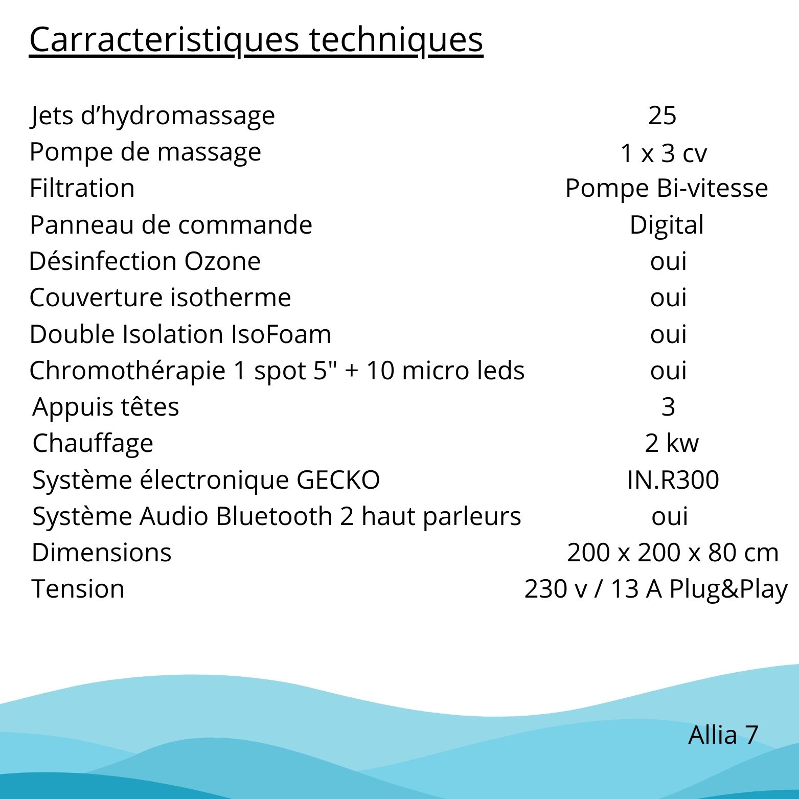 Notre Spa Allia 7 conçu pour les familles, est un spa doté de 7 positions assises .